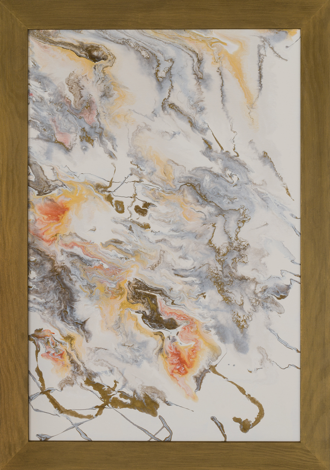 Forma obrazu przypomina wirujące plamy farby, które układają się w taneczne figury, symbolizujące radość i lekkość. Złote wstawki wprowadzają poczucie magii, przyciągając wzrok i zachęcając do dłuższego przyjrzenia się.