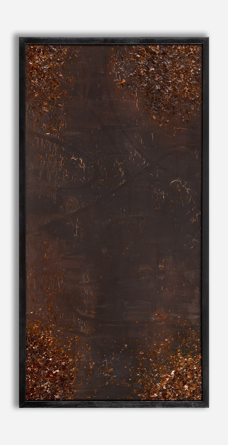Obraz na bawełnianym płótnie, naciągniętym na krosno malarskie. Oprawiony w czarną drewnianą ramę. Obraz stworzony z rzeźbiarskim, nowatorskim podejściem. Ręcznie wykonany techniką mieszaną, na bazie farb akrylowych, mediów malaraskich oraz innych artykółów plastycznych. Zabezpieczony werniksem. Na rewersie podpis autorki.