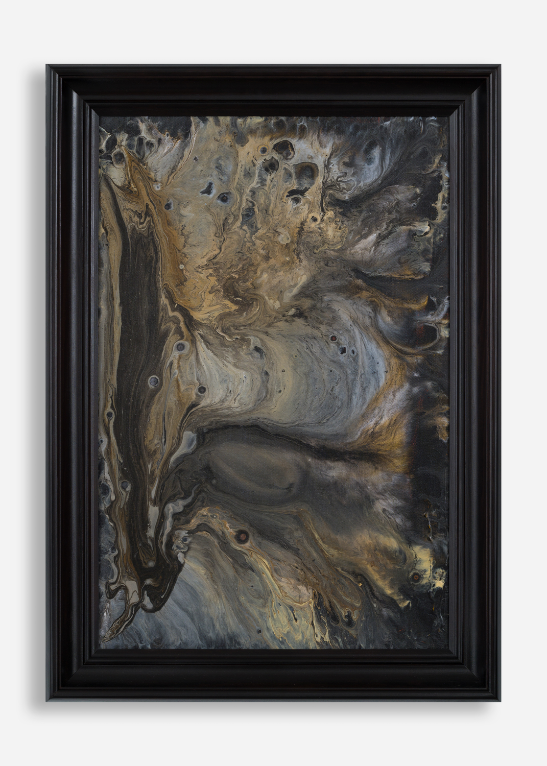 Obraz na bawełnianym płótnie, naciągniętym na krosno malarskie. Oprawiony w drewnianą ramę o szerokości 50 mm. Ręcznie wykonany techniką mieszaną/własną, na bazie farb akrylowych. Zabezpieczony werniksem. Podpisany przez autora.