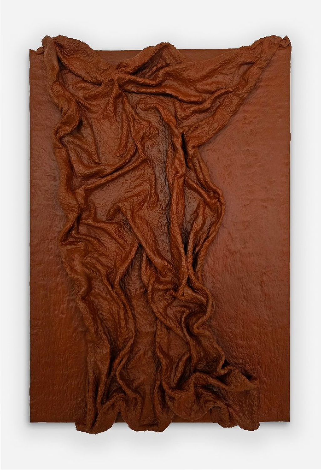 Całość została pokryta farbami akrylowymi w ciepłym, rdzawym odcieniu, podkreślającym surowość i naturalność kompozycji. Półmatowe wykończenie potęguje wrażenie autentyczności, a delikatne refleksy światła na wypukłych fragmentach wydobywają subtelne niuanse struktury. Gra światła i cienia zmienia się w zależności od perspektywy, nadając obrazowi żywy, niemal rzeźbiarski charakter.