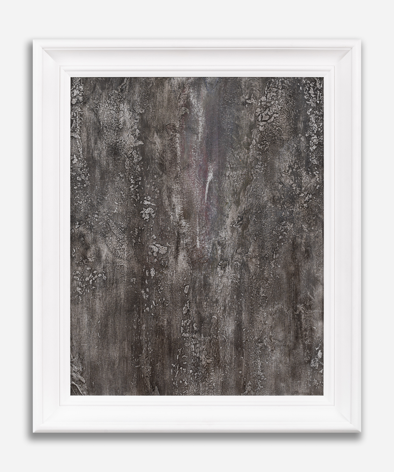 Abstrakcja na bawełnianym płótnie, naciągniętym na krosno malarskie. Obraz oprawiony w białą frezowaną ramę z naturalnego drewna, o szerokości 50 mm. Ręcznie wykonany techniką mieszaną/własną, na bazie farb akrylowych, mediów oraz innych artykółów plastycznych. Nowatorski z ciekawą fakturą i metalicznym wykończeniem. Zabezpieczony werniksem. Na rewersie podpis autorki.