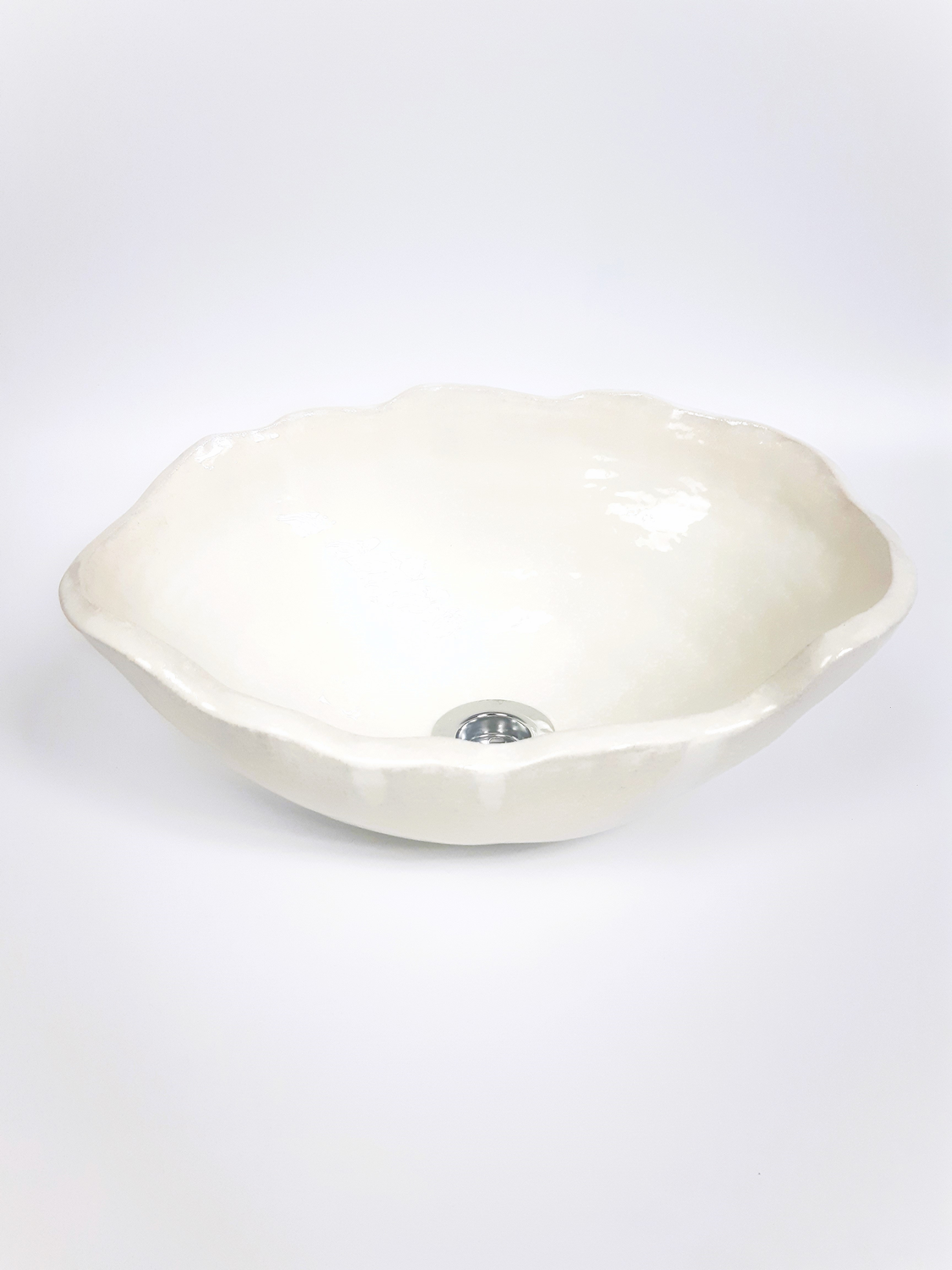 Wykonana z białej gliny, pokryta szkliwem o drobnych kryształkach.